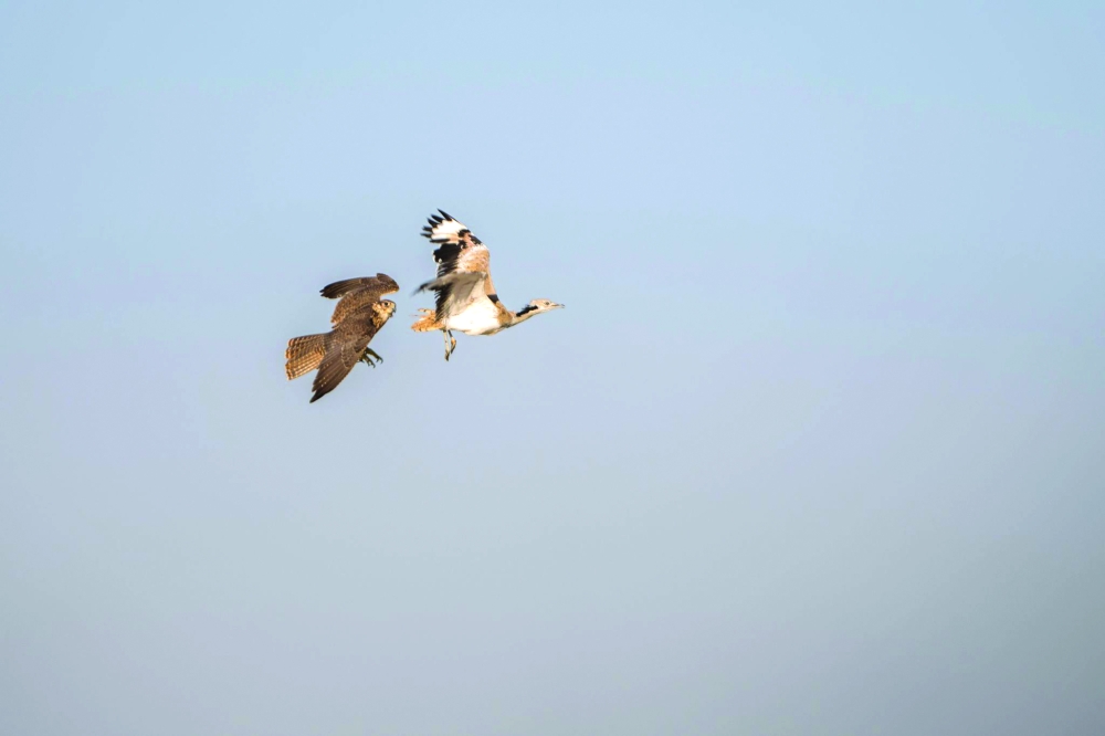 وأشار إلى أن مهمته مع الفريق هي قص الأثر وكذلك القنص، وقص الأثر له فراسة وذكاء وخبرة، وقد تعلمت هذه المهارة من والدي، حيث يمكن أن نتعرف على أثر الطرائد ونوعها وكذلك وقت وجودها فمثلا الأثر إذا لم يكن ظاهرا بوضوح ولم يمسه شيء فهذا إشارة إلى أن الطريدة كانت موجودة منذ فترة قصيرة أما بعد ذلك فيبقى الأثر ولكن تأتي مؤثرات تطمس أجزاء منه ومن هنا نتوقع الوقت وهذه مهارة يعرفها كثير من أهل المقناص.
