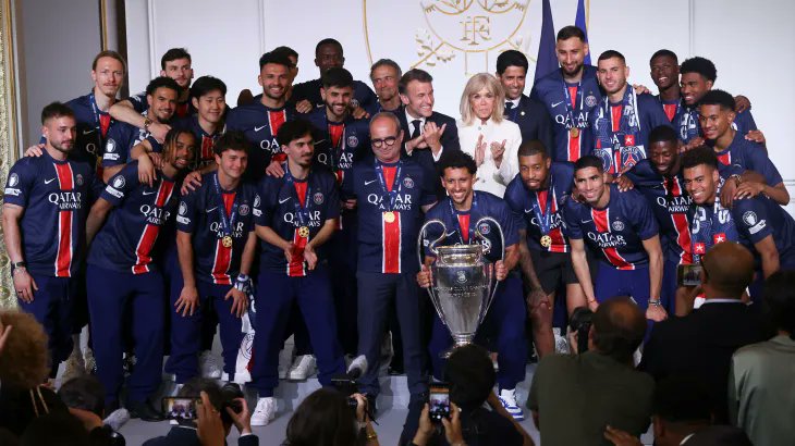 استقبل الرئيس الفرنسي إيمانويل ماكرون، اليوم، فريق نادي باريس سان جيرمان في قصر الإليزيه، احتفالا بتتويج الفريق بلقب دوري أبطال أوروبا للمرة الأولى في تاريخه، بعد فوزه الكبير على إنتر ميلان الإيطالي بخمسة أهداف دون رد.