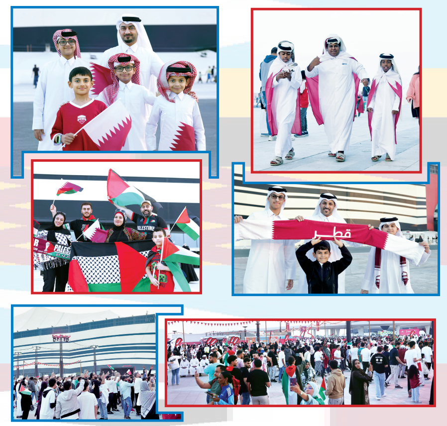 حظيت منطقة الفعاليات في استاد البيت المونديالي بحضور جماهيري واسع قبيل انطلاق مباراة المنتخب الوطني مع نظيره الفلسطيني في افتتاح بطولة كأس العرب قطر 2025 والتي انتهت بفوز الفدائي بهدف دون رد.