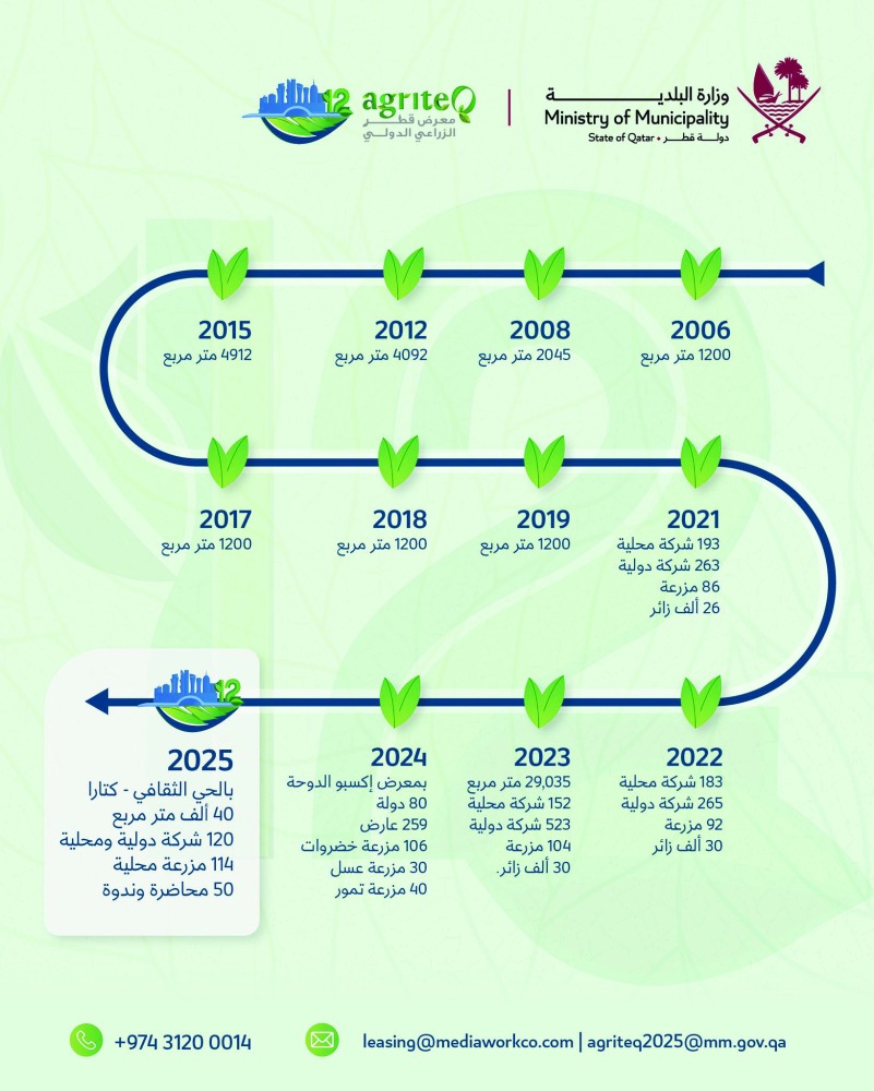 ويعد المعرض منصة رائدة تسهم في تعزيز الجهود الوطنية من الإنتاج المحلي باستخدام أحدث التقنيات الزراعية وترشيد العادات الاستهلاكية من أجل صحة أفضل وتحقيق استدامة القطاع الزراعي والحد من آثار التغير المناخي. ويُمثل المعرض فرصة مثالية لفتح آفاق الاستثمار الزراعي، مما يسهم في تعزيز العلاقات التجارية وتوسيع مجالات التعاون الدولي. ويأتي ذلك في إطار جهود الدولة لتحقيق أهداف المرحلة الثالثة من رؤية قطر الوطنية 2030 في تعزيز الأمن الغذائي والتنمية المستدامة. كما يعد المعرض، الذي تستمر فعالياته حتى الثامن من فبراير المقبل، واحدا من أبرز الفعاليات الزراعية في المنطقة والتي تسلط الضوء على أفضل الحلول والأساليب الزراعية المبتكرة، حيث يتيح منصة مثالية لتبادل المعرفة ومشاركة الخبرات بين مجموعة من أبرز المتخصصين في المجال الزراعي. وقد قامت اللجنة المنظمة للمعرض في وزارة البلدية بإطلاق حملة إعلامية واسعة تسلط الضوء على أهمية القطاع الزراعي ودوره الحيوي في تحقيق الأمن الغذائي لدولة قطر والمنطقة، كما تسعى الحملة إلى إبراز جهود الدولة في تحقيق الاكتفاء الذاتي عبر الاستراتيجية الوطنية للأمن الغذائي 2030.