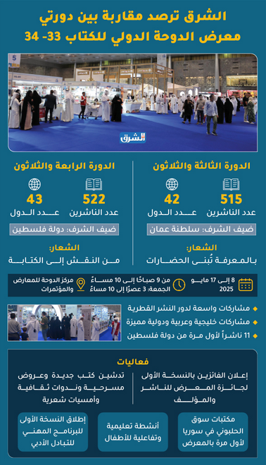 تنطلق يوم الخميس المقبل، الدورة الرابعة والثلاثون لمعرض الدوحة الدولي للكتاب في مركز الدوحة للمعارض والمؤتمرات، وتتواصل حتى 17 من الشهر الجاري، وذلك وسط ترقب في أوساط المثقفين وعشاق القراءة .
