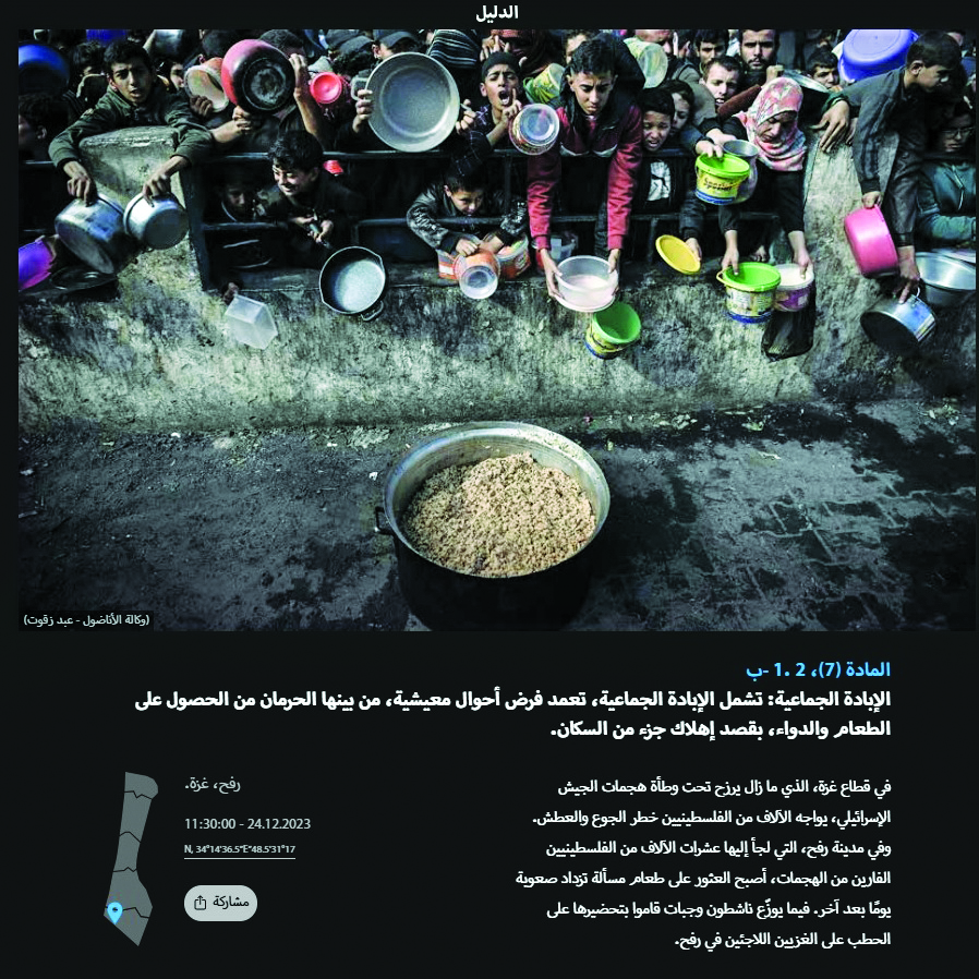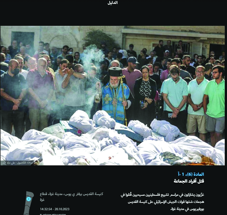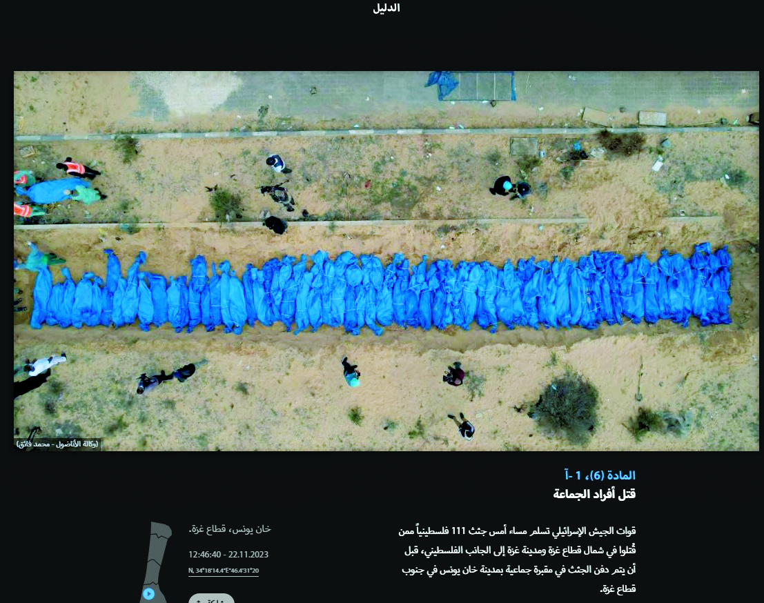 وشكلت الصور التي تبرز «الجرائم والانتهاكات الإسرائيلية» في غزة التي جرى توثيقها في كتاب «الدليل»، جانبا مهما من الأدلة المقدمة في قضية «الإبادة الجماعية» التي رفعتها جنوب أفريقيا ضد الاحتلال الإسرائيلي أمام محكمة العدل الدولية في لاهاي.