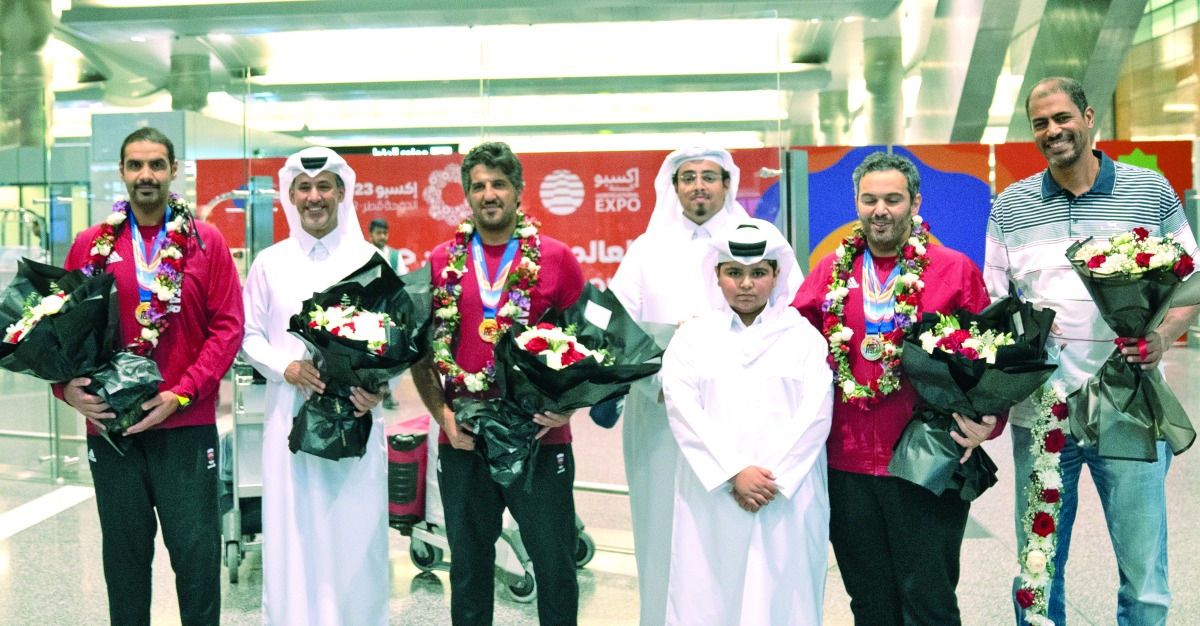 حظي أبطالنا رماة العنابي باستقبال وردي حافل فور وصولهم فجر امس الى مطار حمد الدولي عقب وصولهم من كوريا الجنوبية محملين بانجازات جديدة للرماية القطرية.
