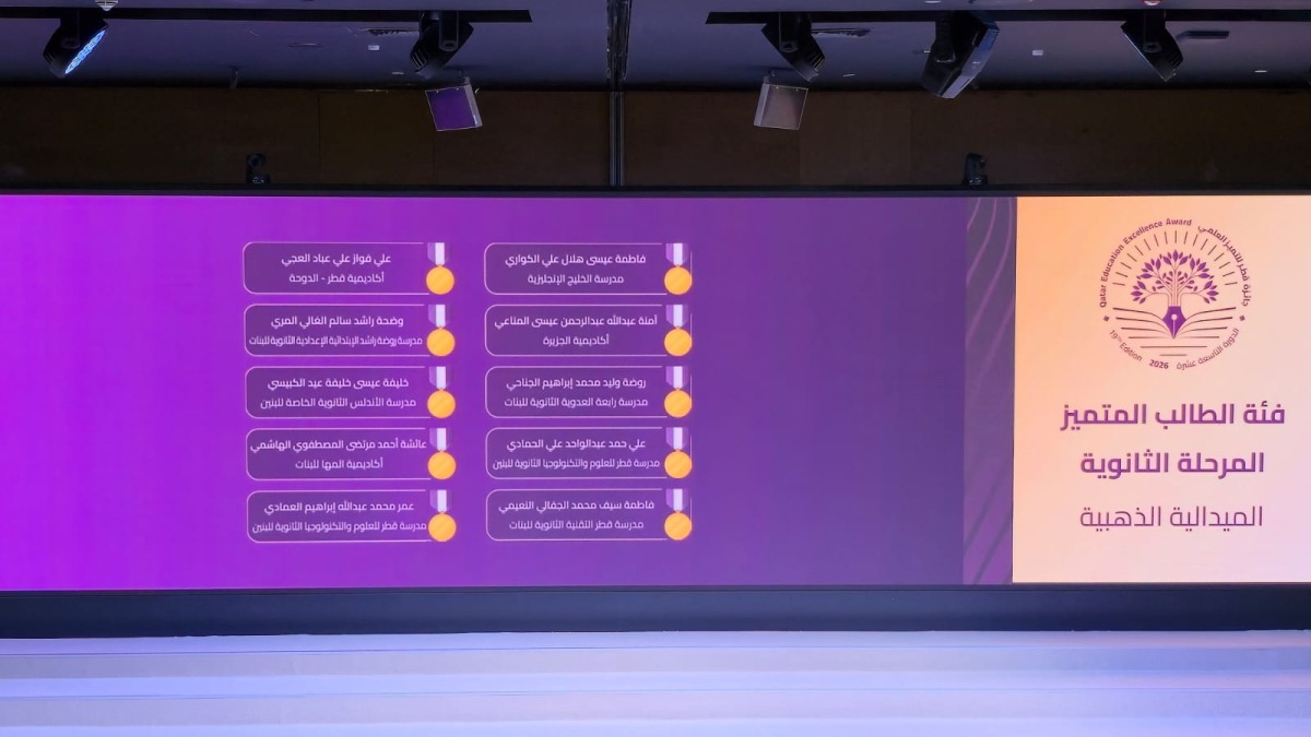 وأعلنت السيدة مريم عبدالله المهندي، الرئيس التنفيذي لجائزة قطر للتميز العلمي، نتائج هذه الدورة، موضحةً أن النتائج عكست تنوّعًا لافتًا في المؤسسات التعليمية التي ينتمي إليها الفائزون، حيث شملت طلبة من المدارس الحكومية والخاصة والتخصصية، إلى جانب طلبة من الجامعات المدنية والعسكرية، والكليات المختلفة، بما يعكس اتساع قاعدة التميز وانتشار ثقافته في مختلف مؤسسات التعليم في الدولة.