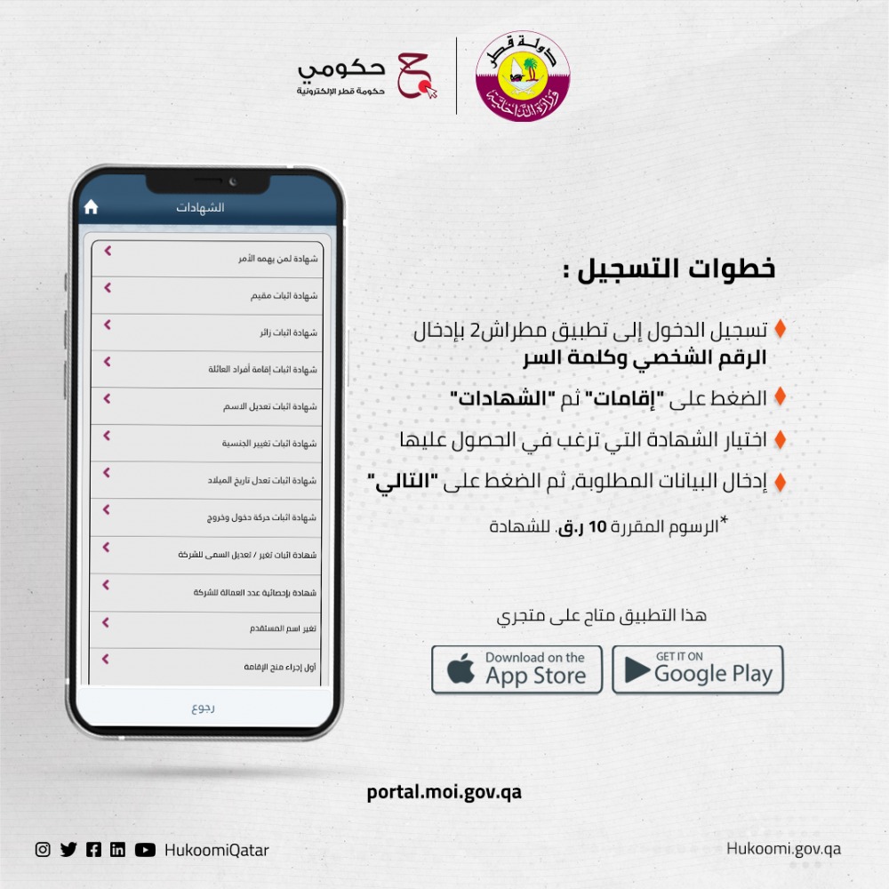 وأكدت بوابة حكومي أن الرسوم المقررة هي 10 ريالات قطرية لكل شهادة.