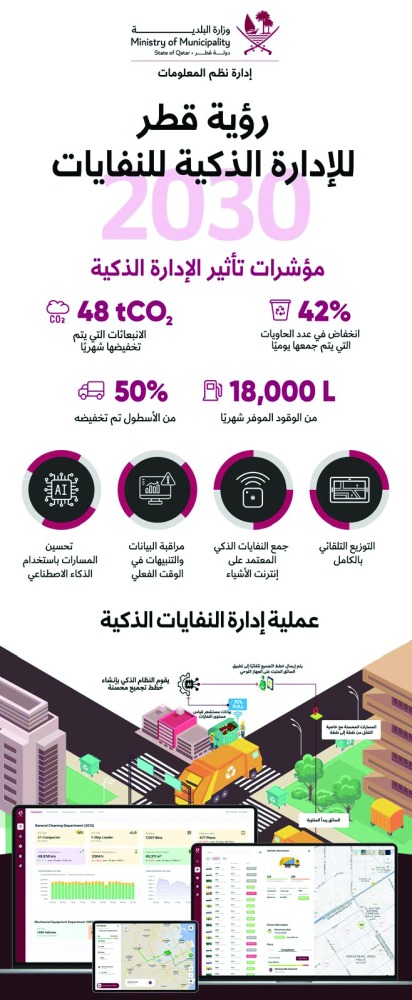 ■ تنفيذ المرحلة الثانية من مشروع الإدارة الذكية للنفايات وتتبع المركبات بلديتي الدوحة والريان