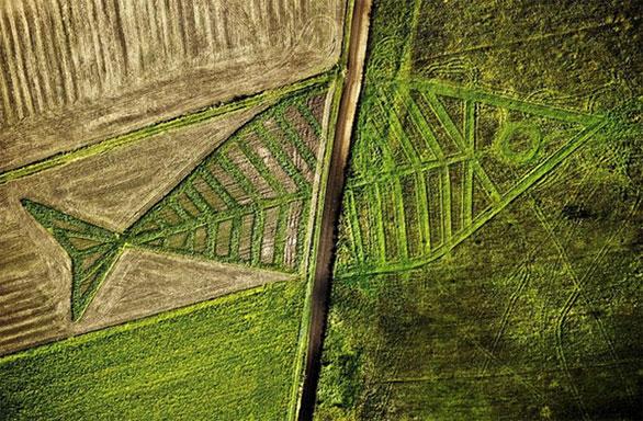 رسم الفنان ياروسلاف كوزيارا سمكتين في حقل هوروديسكي الواقع في بولندا، وحقل واريز في أوكرانيا، خلال مهرجان فنون الأرض عام 2011.