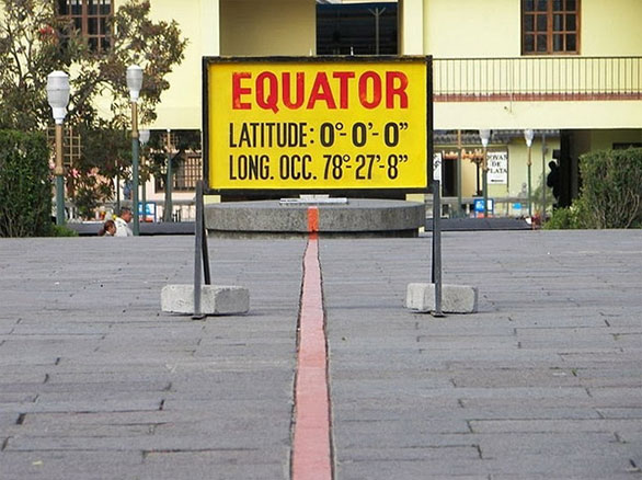 على الرغم من أن خط الاستواء يمر بالعديد من البلدان، ولا يشكل حداً فاصلاً بين أي بلدين، إلا أن الإكوادور اختارت أن تميز الموقع بلافتة وخط أحمر يقسم حديقة ميتاد ديل موندو، ويمكن لزوار الحديقة أن يتفاخروا بوضع قدم شمال خط الاستواء وأخرى جنوبه.