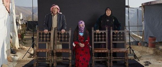 الصور التقطت في أحد مخيمات منطقة البقاع في لبنان على الحدود مع سوريا، واعتمد المصور على وضع لوح أسود خلف كل عائلة، ليضيف إليها مشاهد من الحرب أو المدن المدمرة.