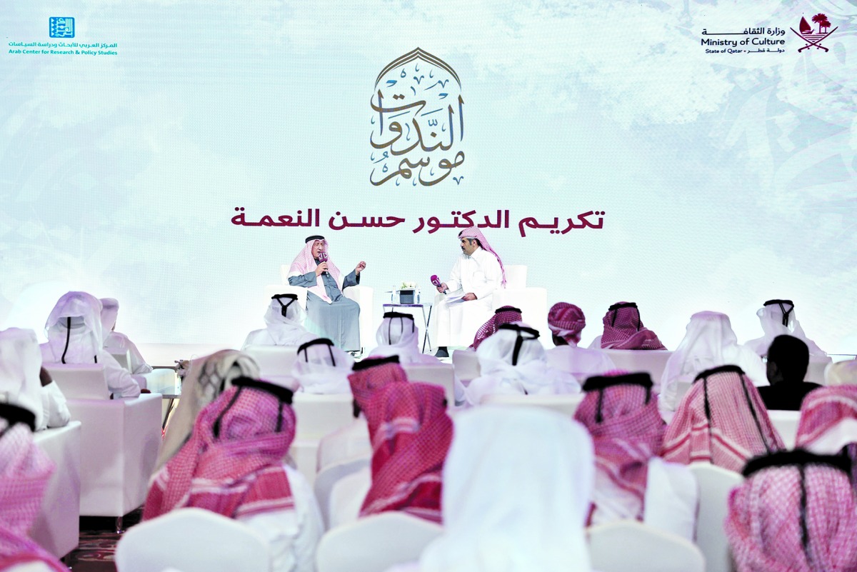 وبدأ موسم الندوات للعام 2024 بتكريم خاص من سعادة الشيخ عبد الرحمن بن حمد آل ثاني وزير الثقافة للكاتب والشاعر والدبلوماسي السابق الدكتور حسن النعمة، وذلك تقديرا لمسيرته الشعرية الحافلة وعطائه الثقافي والأدبي المتواصل.