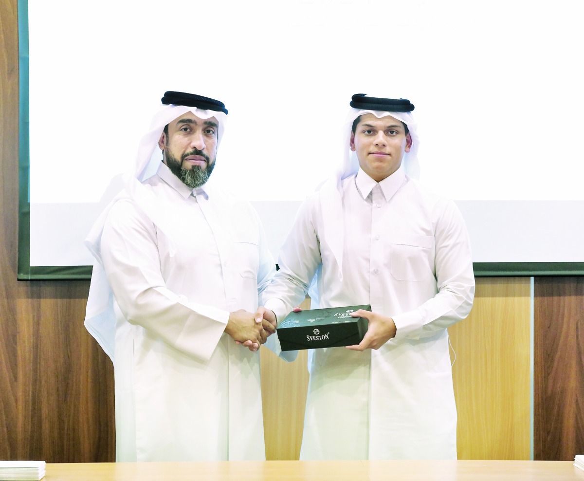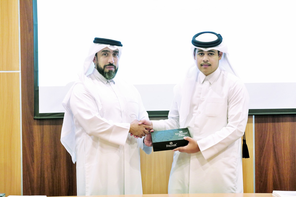 وفي ختام الحفل قام الدكتور محمد خليفة الكبيسي رئيس قسم التدريب والتطوير الإداري بتكريم جميع الطلاب المشاركين بشهادات تكريم ومكافأة مالية تشجيعية، كما كرّم أفضل خمسة طلاب بهدايا قيمة، منهم اثنان لتميزهما الأخلاقي وهما الطالب ريان أحمد الكواري، والطالب حمد ثامر القاضي، وطالبان لأفضل عرض تقديمي لمشروع التخرج وهما سالم جابر مسلم النابت، والطالب محمد ناصر الكبيسي، والطالب عبدالله إبراهيم العمادي لأفضل مشروع.