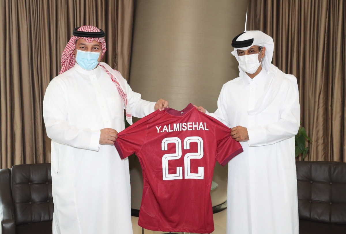 استقبل سعادة الشيخ حمد بن خليفة بن أحمد آل ثاني رئيس الاتحاد القطري لكرة السيد ياسر المسحل رئيس الاتحاد السعودي لكرة القدم والوفد المرافق له .