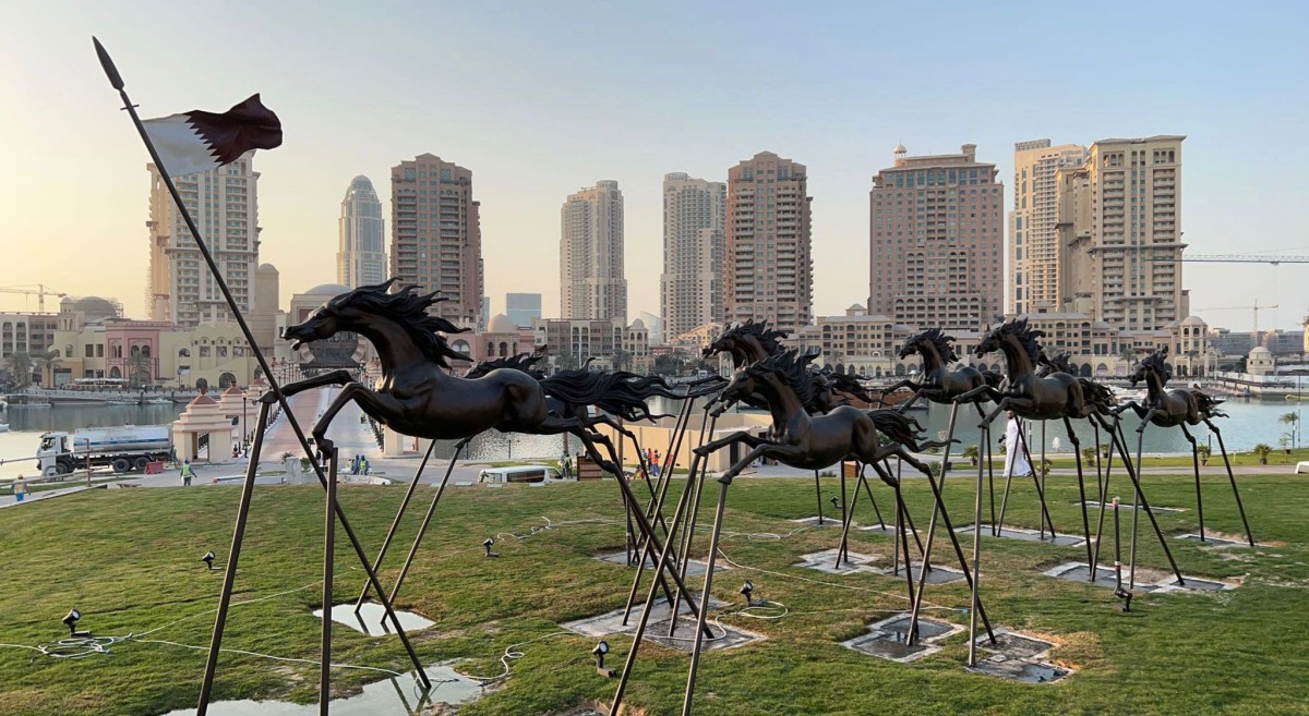 ????العمل مستوحى من أسهم العلم القطري التسعة "تسعة خيول" محلقين بأعالي السماء