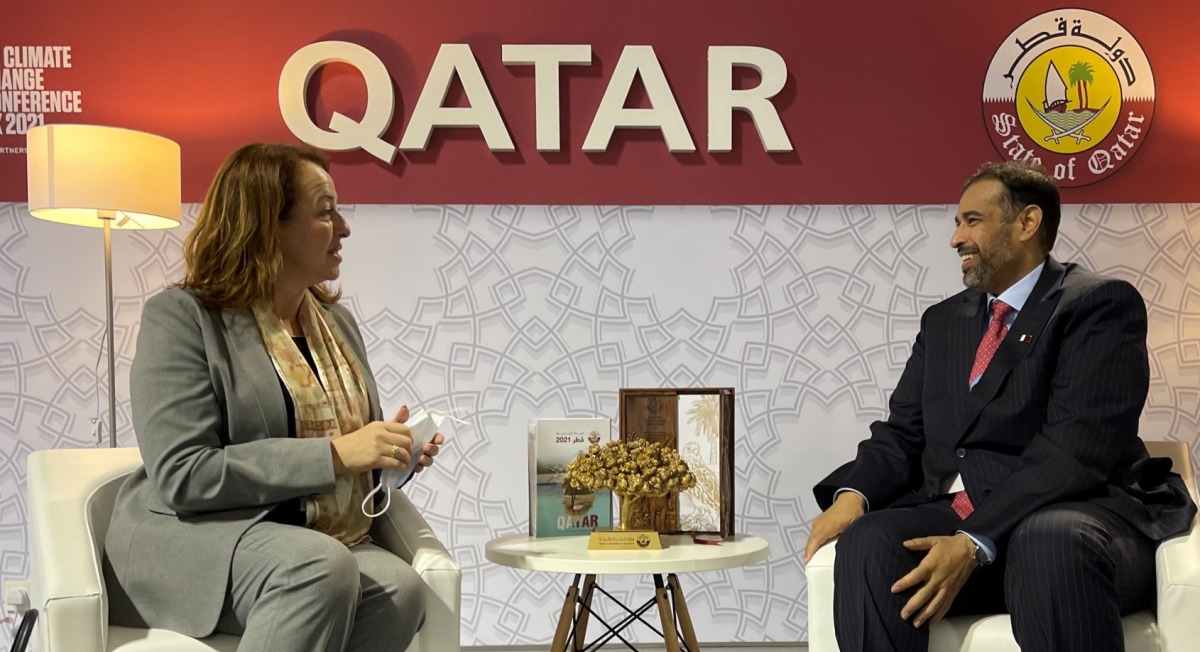 وكان سعادة وزير البيئة والتغير المناخي، قد افتتح جناح دولة قطر على هامش المؤتمر الـ26 للأطراف في اتفاقية الأمم المتحدة الإطارية بشأن تغير المناخ /COP26/ بمدينة غلاسكو في الأول من شهر نوفمبر الجاري، ورحب في كلمته بهذه المناسبة بضيوف المعرض من وفود نحو 200 دولة تشارك في المؤتمر، مؤكدا التزام دولة قطر بمتابعة جهود الحد من الانبعاثات الكربونية والتقليل من الاحتباس الحراري.
