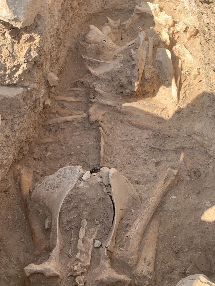 وتم العثور أيضا على هيكل عظمي لناقة وصغيرها مدفونين كقربان في غرفة حجرية متصلة بإحدى المقابر البشرية. وسوف تخضع البقايا البشرية لتحليلات أنثروبولوجية وجزيئية متقدمة، بما في ذلك دراسة المواد الوراثية القديمة. وتهدف تلك العملية إلى فهم أنماط الهجرة، والعادات الغذائية للأشخاص الذين عاشوا في هذه المنطقة في العصور الغابرة.