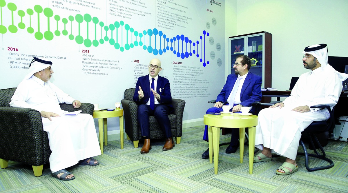 دعني أوجز بأنّ ما حدث في السنوات السابقة هو إنتاج قاعدة بيانات جينية وصحية ضخمة هي الأولى في الوطن العربي. تمّ تحليلها ودراستها واستخلاص النتائج المهمة منها، واليوم نحن في مرحلة الانتقال إلى التطبيق السريري المبني على هذه النتائج. لذلك دور شركائنا في القطاع الصحي مثل مؤسسة حمد ومركز سدرة للطب ومؤسسة الرعاية الصحية الأولية في هذه المرحلة هو عامل حاسم ومهم جداً. بدأنا بالفعل بدراسات تجريبية صغيرة على مجموعات من المرضى مع هؤلاء الشركاء وبعد الانتهاء من كل دراسة سنقوم بتحليل النتائج وتحديد التحديات والفجوات ثم نقوم بجسرها لنتمكن مع شركائنا من تكبير وتعميم هذه الاجراءات داخل النظام الصحي.