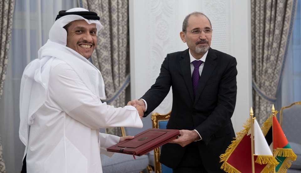 وقع سعادة الشيخ محمد بن عبدالرحمن آل ثاني نائب رئيس مجلس الوزراء وزير الخارجية، وسعادة السيد أيمن الصفدي نائب رئيس الوزراء ووزير الخارجية وشؤون المغتربين بالمملكة الأردنية الهاشمية، مساء اليوم، اتفاقية حول الإعفاء المتبادل من التأشيرة لحاملي جوازات السفر الدبلوماسية والخاصة بين حكومة دولة قطر وحكومة المملكة الأردنية الهاشمية، ومذكرة تفاهم بين جهاز قطر للاستثمار وشركة إدارة الاستثمارات الحكومية الأردنية "جيماك"، وذلك بمناسبة الزيارة الرسمية التي يقوم بها جلالة الملك عبدالله الثاني ابن الحسين ملك المملكة الأردنية الهاشمية الشقيقة للبلاد.