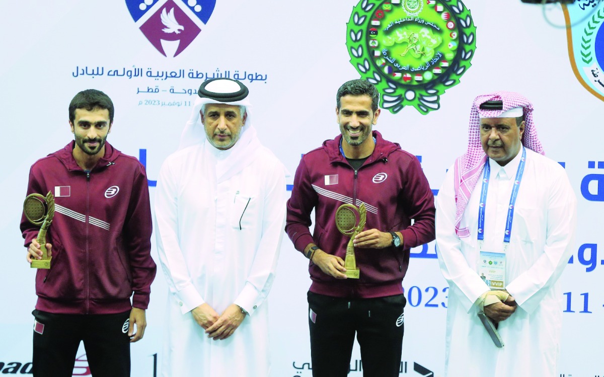 تحت رعاية سعادة الشيخ خليفة بن حمد بن خليفة آل ثاني وزير الداخلية قائد قوة الأمن الداخلي (لخويا)، اختتمت أمس على صالة علي بن حمد العطية بطولة الشرطة العربية الأولى للبادل، وقام سعادة الشيخ عبد العزيز بن فيصل آل ثاني وزير الدولة للشؤون الداخلية، بتتويج أصحاب المراكز الثلاثة الأولى للبطولة التي استضافها الاتحاد الرياضي القطري للشرطة، بمشاركة 26 فريقا يمثلون 15 دولة هي (قطر، السعودية، مصر، تونس، المغرب، الجزائر، العراق، الإمارات، موريتانيا، لبنان، سلطنة عمان، الأردن، اليمن، فلسطين، والسودان)، وبمجموع جوائز يصل إلى 124 ألف دولار.