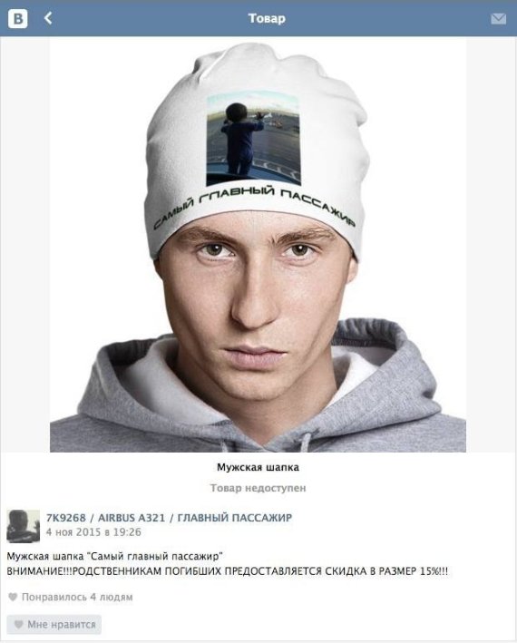 لم يتوقع احد أن تكون مأساة الطائرة الروسية بمثابة تجارة مربحة لبعض الروس، فقد عثر على صفحات روسية تبيع قطعاً من الطائرة التي تحطمت في سيناء أواخر الشهر الماضي، فضلاً عن منتجات أخرى عليها صور الضحايا، فيما أغلقتها روسيا.