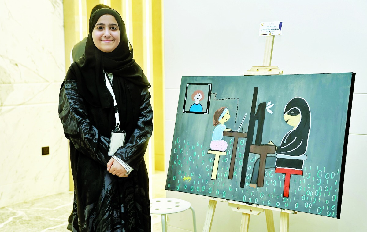 من جانبها، قالت الطفلة أسماء ناصر الكواري في الصف الثالث بمدرسة نيوتن: رسمت برامج وجوالاً ومواقع إلكترونية وتتوسط هذه الوسائل الأم والأب ممن يقفون لمساعدة أطفالهم من الوسائل وهذه حماية لهم.