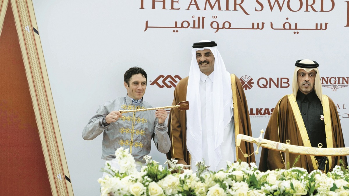 شهد الشوط الثامن والرئيسي في السباق امس على سيف سمو الأمير للخيل العربية الأصيلة (الفئة الأولى)، 4 سنوات فما فوق، 2300م، أداء خيالي من الجواد الأسطوري "الغدير" (المرتجز × غرّاء) الذي اكد مكانته كواحد من أعظم الجياد على مر التاريخ، رافعاً شعار الشقب ريسنغ من جديد لتحقيق إنجاز غير مسبوق بالاحتفاظ بالسيف الغالي سيف سمو الأمير من الفئة الأولى للخيل العربية الأصيلة وبتاج الدوحة الثلاثي للمرة الثانية على التوالي، وذلك بقيادة رائعة من الخيال العالمي كريستوف سوميون وبإشراف المدرب القدير فرانسوا رو، ليجدد الجواد البطل عضويته بنادي العظماء، مثبتاً من جديد أنه قوة لا تقارن ولا تنافس، فهذه هي الروعة والعظمة، وهذا هو "الغدير".