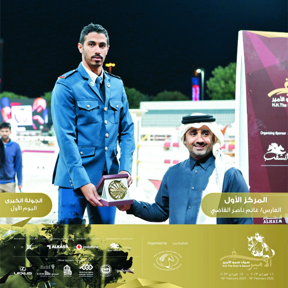 انطلقت مساء امس على الميدان الخارجي لاتحاد الفروسية والخماسي الحديث بالريان منافسات اليوم الأول لقفز الحواجز ضمن بطولة سيف سمو الأمير المفدى لقفز الحواجز والترويض، الثالثة عشرة، المقامة في الميدان الرئيسي للاتحاد القطري للفروسية التي ستختتم اليوم السبت. وحقق الفارس غانم ناصر القاضي الفوز بالمركز الأول في الجولة الكبرى التي أقيمت على ارتفاع 135–145 سم، وحل في المركزين الثاني والثالث الفارس محمد خليفة الباكر على جوادين مختلفين. وشهدت منافسات الجولة الصغرى التي أقيمت على ارتفاع حواجز 110 – 120 سم بمشاركة 46 فارسا وفارسة نجح 15 منهم في اجتياز الحواجز بدون أخطاء، وفاز الفارس محمد ناصر القاضي بالمركز وحل سلطان سالم النعيمي، ومريم أحمد البوعينين في المركز الثالث. أما في الجولة المتوسطة التي أقيمت على ارتفاع حواجز 120–135 سم بمشاركة 14 فارسا نجح 4 فرسان في اجتياز الحواجز بدون اخطاء. وفاز راشد تويم المري بالمركز الأول، وجاء حمد علي العطية في المركز الثاني وخالد سند النعيمي في المركز الثالث.