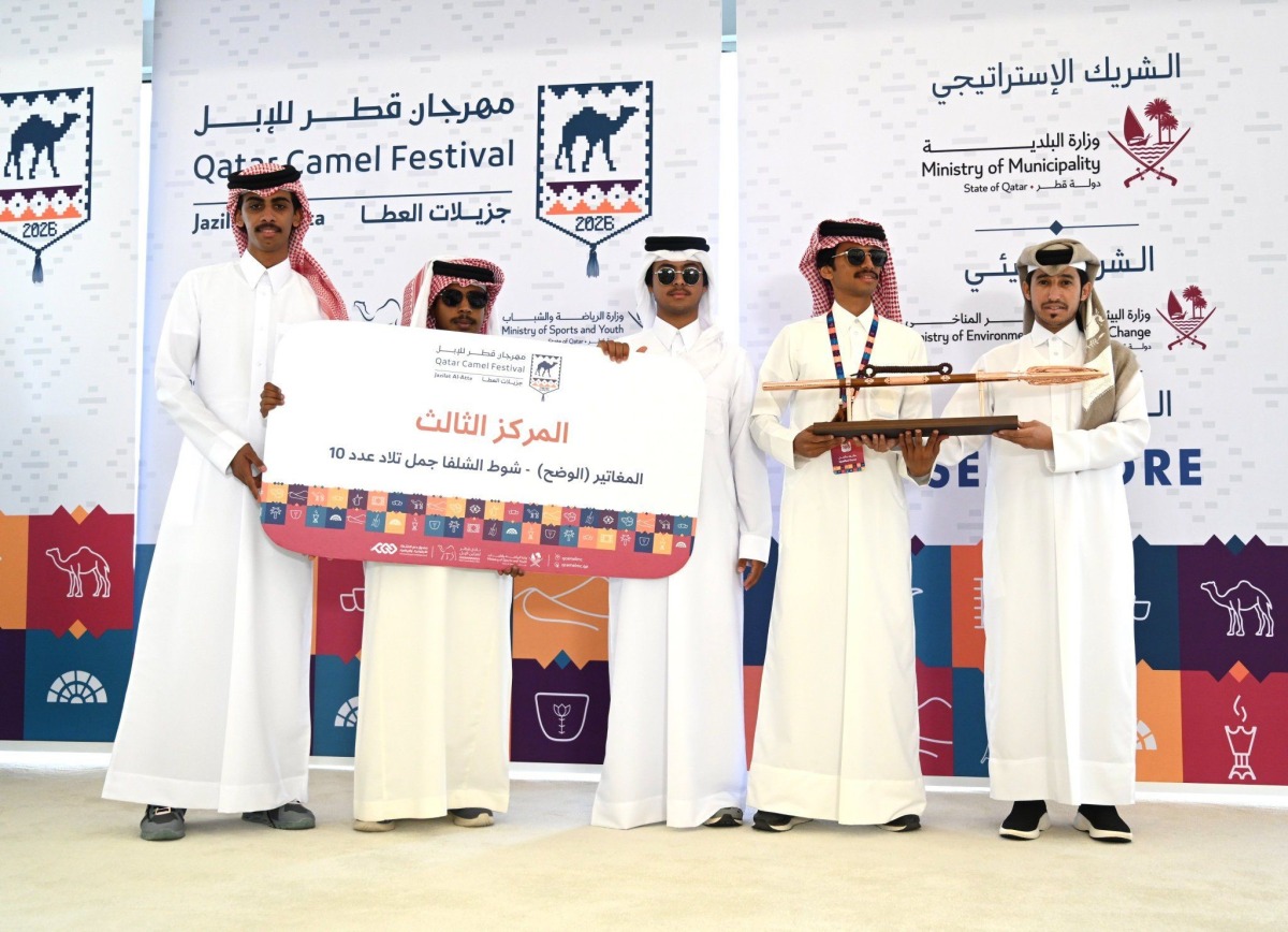 شهد اليوم التاسع من مهرجان قطر للإبل "جزيلات العطا" في نسخته الخامسة لعام 2026، نتائج مميزة، حيث حقق ابراهيم علي عمر السحيباني لقب شوط الشلفا في منافسات المغاتير الوضح، وذلك عقب جمع النقاط، أحرز ابراهيم علي عمر السحيباني مالك المنقية "M4" لقب شوط الشلفا– عدد 10 دق، اثر احتلاله المركز الأول وجائزته الشلفا الذهبية وسيارة " بي ام دبليو x5"، متفوقا على بدر عبدالله صلاح الروقي مالك المنقية "M3" الذي حل في المركز الثاني وجائزته الشلفا الفضية وسيارة " نيسان باترول"، وحصل نواف بداح قريع الدوسري مالك المنقية "M6" على المركز الثالث وجائزته الشلفا البرونزية وسيارة " جيمس سييرا "، فيما نال سحمي وقيان حمد الدوسري مالك المنقية "M5" المركز الرابع وجائزة مالية قدرها 100 ألف ريال، وأخيرا حصد محمد ناصر على الشهري مالك المنقية "M2" المركز الخامس وجائزته 50 ألف ريال.