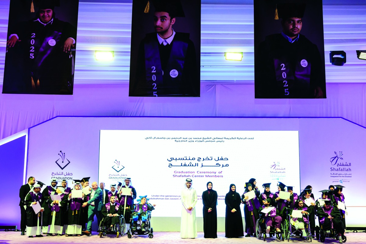 احتفل مركز الشفلح للأشخاص ذوي الإعاقة، صباح أمس، أحد المراكز المنضوية تحت مظلة المؤسسة القطرية للعمل الاجتماعي، بتخريج دفعة جديدة من منتسبيه «دفعة 2025»، والذين يصل عددهم إلى 28 طالبًا وطالبة، والذين تلقوا تعليمًا وتأهيلاً متخصّصًا وفق أرقى المعايير العالمية، وذلك بهدف تنمية قدراتهم الذاتية وتطوير مهاراتهم وتعزيز عملية دمجهم في المجتمع.