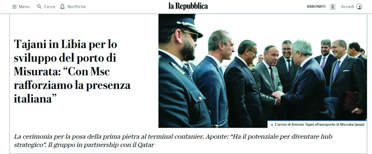من جهة أخرى، قالت صحيفة لاريبوبليكا أن أنطونيو تاياني أكد أن هذا المشروع يُعد أمرًا أساسيًا بالنسبة لبلد يعتمد نحو 40% من ناتجه المحلي الإجمالي على الصادرات». فيما قال رئيس مجموعة MSC، دييغو أبونتي، «مشروع مهم لديه القدرة على أن يصبح مركزًا استراتيجيًا يربط بين أوروبا والبحر المتوسط وأفريقيا، ويولّد فوائد متبادلة ومتزايدة في التبادلات التجارية، مع دور محوري لإيطاليا». وأضاف: «بالنسبة لمجموعتنا، يُعد هذا التزامًا واستثمارًا طويل الأمد ننفذه بالشراكة مع شركة الماها القطرية وليبيا».