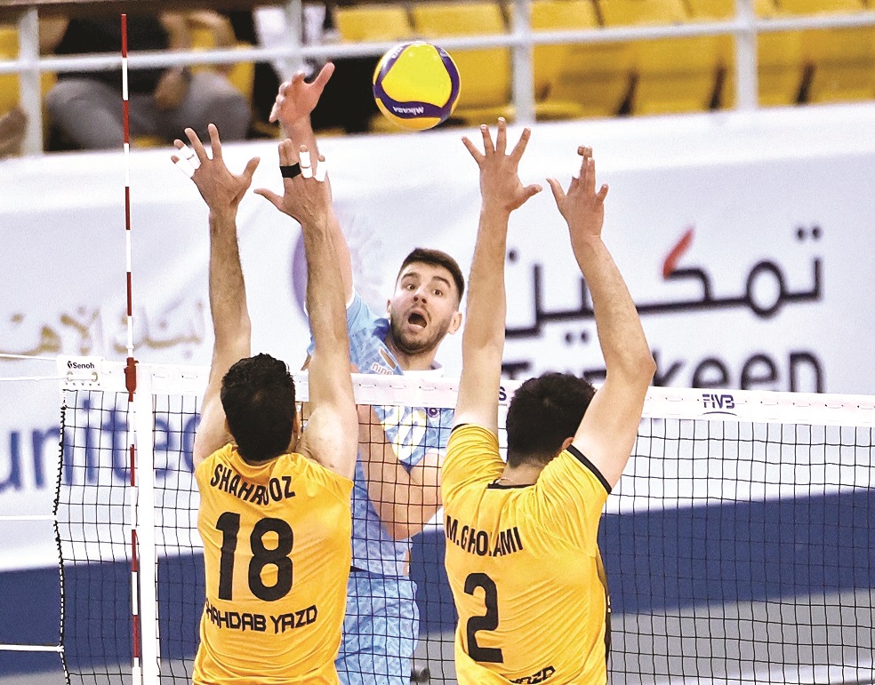 وقد حفل الشوط الأول بالاثارة والندية، وكان اللعب سجالا بين الفريقين، ونجح فريق الشرطة من التقدم حتى النتيجة (19/16)، واستمر في تقدمه بفضل الأداء الجيد والمميز للاعبيه سواء في الاستقبال الجيد وتألق ناجي محمود، كما نجح اللاعب بلال بونبوت في حائط الصد واللعب السريع، وزج المدرب بالفريق الثاني الذي كان نداً قوياً الفريق شهداب يزد الايراني الفائز بهذه البطولة قبل سنتين ويضم لاعبين محترفين مميزين، ولكن بعزيمة الرجال وإصرارهم على الفوز تمكنوا من الفوز بهذا الشوط (25/20).
