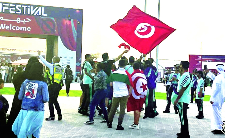 رصدت (الشرق) جانبا من الفرق المشجعة لكأس العالم حيث التقينا عددا من مشجعي الفريق التونسي وأعربوا عن أملهم في تأهل المنتخب التونسي إلى مستويات عليا خلال البطولة العالمية لكأس العالم وقالوا لقد جئنا خصيصا إلى قطر لمؤازرة الفريق التونسي والوقوف إلى جانبه خلال تلك البطولة المميزة لافتين إلى أن الأجواء حماسية والكرنفالات المقامة على كورنيش الدوحة على قدر كبير من الروعة من حيث التنوع والتنظيم والابتكار وهذا مؤشر على أن البطولة ستكون ناجحة بكل المقاييس. وقد أكد احمد الورداني وسامي بن غليم وفرات العقوري أن ما شاهدوه في الدوحة من حسن تنظيم وتفرد في الفعاليات يجعل المونديال في غاية المتعة.. وقالوا سنشجع المنتخب التونسي ونؤازره في ارض الملعب ونأمل أن يحقق انجازا كبيرا في كأس العالم.