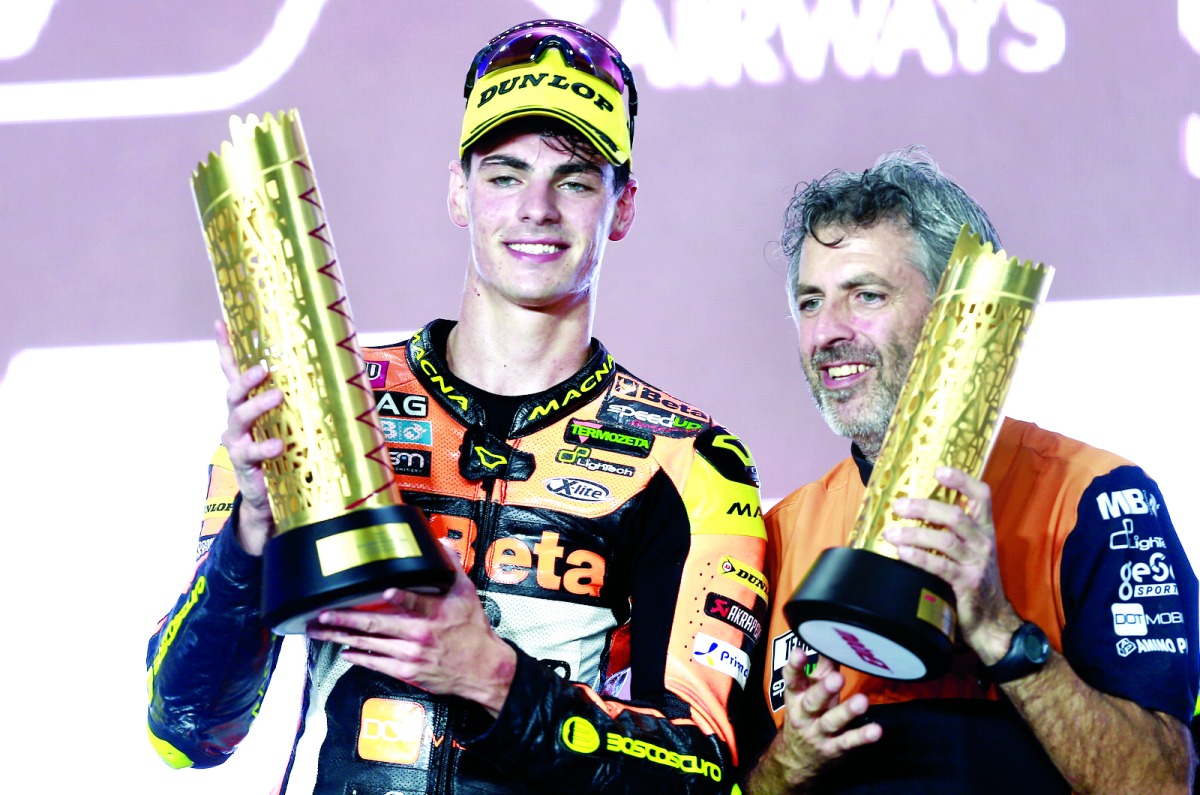 وكان الاسباني بيدرو اكوستا الذي حل في المركز الثامن في جائزة قطر الكبرى بزمن 35.38.715 دقيقة، قد حسم لقب بطولة العالم في فئة الموتو2، قبل جولة قطر حيث يعتلي صدارة الترتيب العام برصيد 328.5 نقطة، متفوقا على اقرب منافسيه الايطالي توني اربلينو صاحب المركز الثاني برصيد 249.5 نقطة، فيما كان البريطاني جاك ديسكون في المركز الثالث برصيد 194 نقطة.
