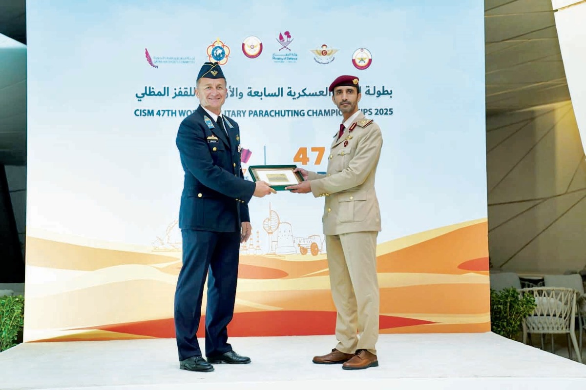 كرمت لجنة قطر للرياضات الجوية مساء امس، رؤساء الوفود المشاركة في بطولة العالم العسكرية للقفز المظلي السابعة والأربعين سيزم 2025، وبتشريف سعادة اللواء الركن راشد محبوب الدوسري، نائب رئيس الاتحاد الرياضي العسكري القطري، وسعادة العميد الركن محمد بن زايد العتيبي، قائد القوات الخاصة المشتركة ورئيس لجنة قطر للرياضات الجوية، وبحضور عدد من أعضاء اللجنة.
