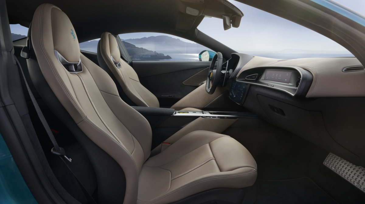 في المقصورة، يتّبع التصميم أسلوب “المقصورة الثنائية” مع عجلة قيادة جديدة مزودة بأزرار فعلية وعودة زر التشغيل الشهير. ويوفر العرض المركزي المدمج وعناصر التحكم المريحة تفاعلاً بديهياً مع السيارة حتى أثناء القيادة الرياضية. وتعزز التفاصيل المصنوعة من ألياف الكربون والخياطة المتباينة من الشعور بالفخامة، فيما توفر المقاعد الخلفية ضمن التكوين 2+ مرونة إضافية سواء من حيث القدرة الاستيعابية أو إمكانية اصطحاب الأطفال.