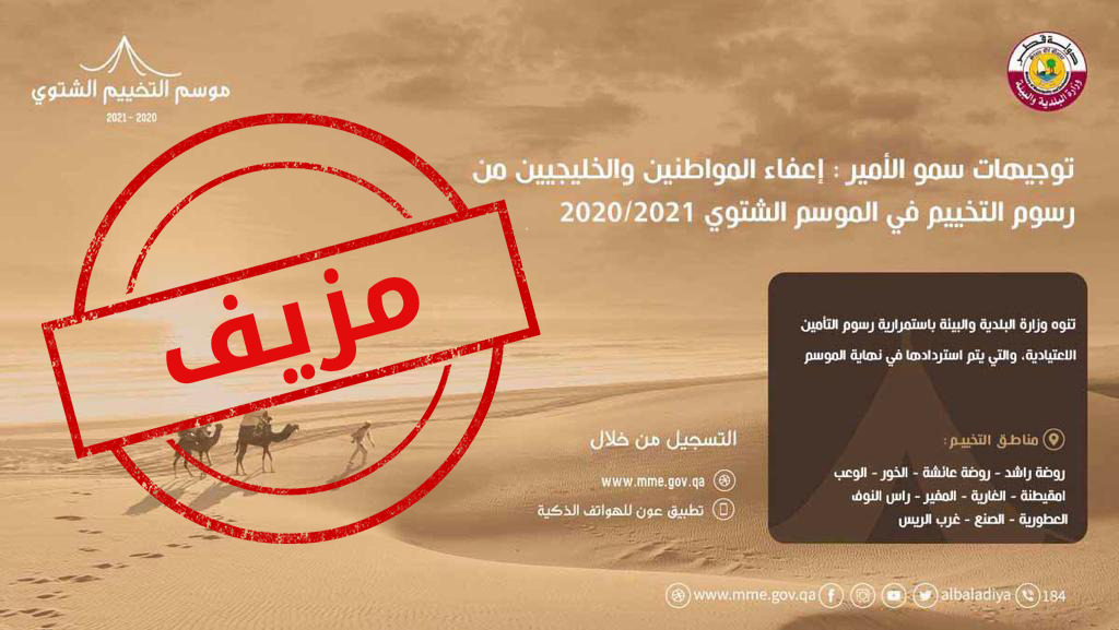 قالت وزارة البلدية والبيئة إنه يتم تداول أخبار عارية عن الصحة مجهولة المصدر حول موسم التخييم الشتوي .