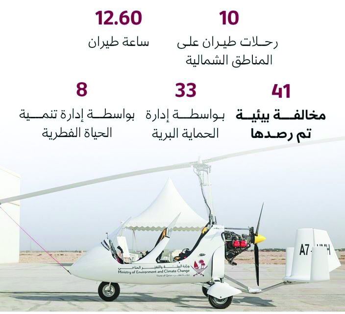 نفذت وزارة البيئة والتغير المناخي في الربع الثاني من العام الجاري 10 طلعات جوية تفتيشية من خلال طائرة «الأوتوجايرو»، غطت المناطق الشمالية من الدولة، وبلغ إجمالي ساعات الطيران 12.60 ساعة، وذلك في إطار جهود الوزارة لتعزيز استخدام التقنيات الحديثة في حماية البيئة والمحافظة على التنوع البيولوجي.