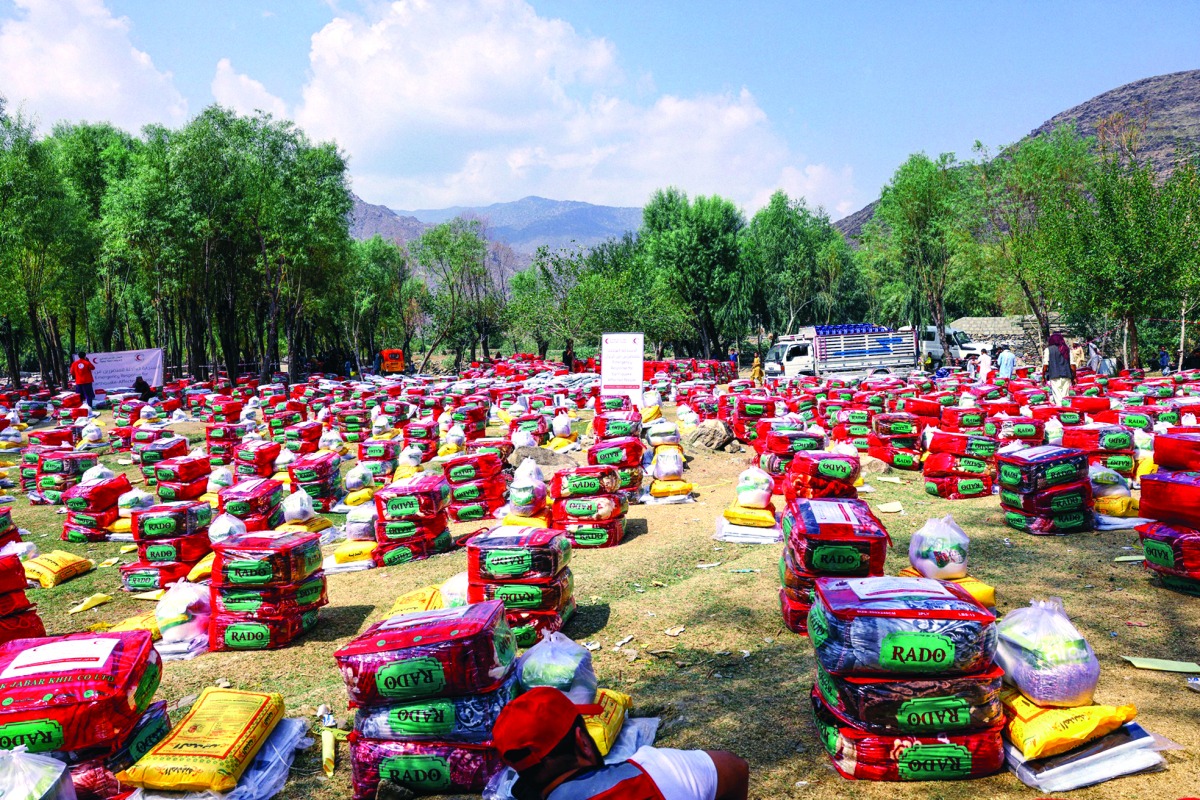 توزيع حزم مواد غذائية أساسية لفائدة 960 أسرة في المناطق المتضررة، وتحتوي الحزمة الواحدة على 8 أصناف هي الطحين والأرز والفاصوليا والسكر والشاي الأخضر وزيت الطعام والملح ومياه الشرب، بوزن إجمالي 119 كغ للحزمة الواحدة.