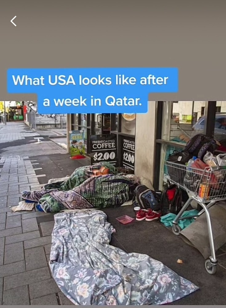 وتطرق آخرون إلى المشردين في الشوارع المنتشرين في دولهم وهو ما لم يجدوه في قطر، فشارك أحد المشجعين صورة لمشردين ملقين على الأرض في أمريكا.