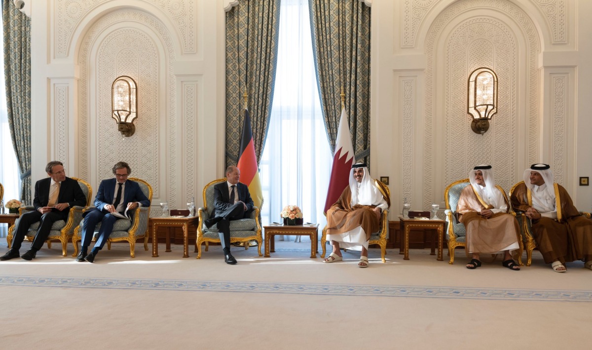 عقد حضرة صاحب السمو الشيخ تميم بن حمد آل ثاني أمير البلاد المفدى ودولة السيد أولاف شولتس مستشار جمهورية ألمانيا الاتحادية الصديقة، جلسة مباحثات رسمية بالديوان الأميري عصر اليوم.