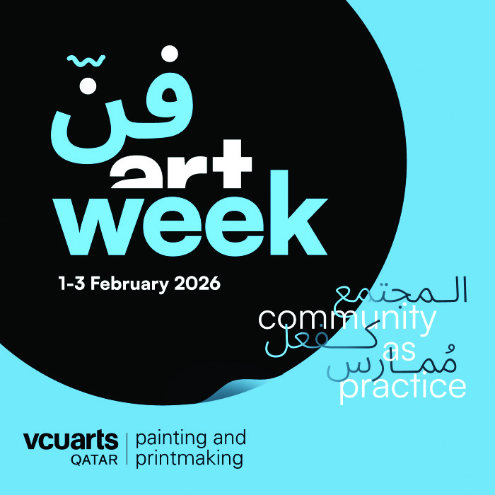 تستعد جامعة فرجينيا كومنولث كلية فنون التصميم في قطر (VCUarts Qatar)، الجامعة الشريكة لمؤسسة قطر، لاستضافة النسخة الثانية من أسبوع الفن 2026: «المجتمع كفعل ممارس» في حرمها الجامعي للفترة من 1 إلى 3 فبراير 2026.