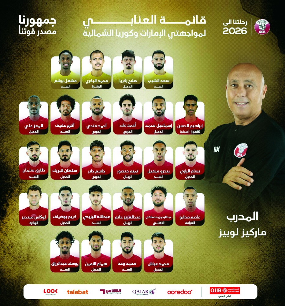 ونال فريقا السد والدحيل في القائمة الجديدة التي أعلن عنها المدرب الإسباني نصيب الأسد من حيث عدد اللاعبين الذين سيدافعون عن ألوان العنابي في مواجهتي الإمارات وكوريا الشمالية..