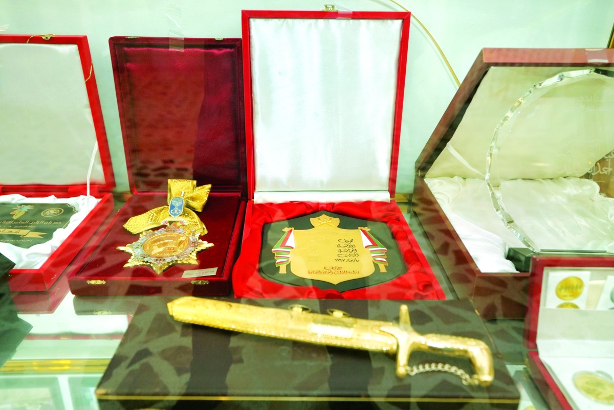 وعلى نحو ما يضمه المعرض، فقد حصل الموسيقار الراحل طوال مشواره الفني، على العديد من الأوسمة وشهادات التقدير، من أهمها جائزة الدولة التقديرية في مجال الموسيقى عام 2006، علاوة على تكريمه من المؤسسة العامة للحي الثقافي (كتارا) تقديرا لدوره ومشواره الفني في إثراء مكتبة الموسيقى القطرية بعدد وفير من أعماله الفنية. ويضم المعرض عدداً من الأوسمة التي تُوج بها الموسيقار الراحل منها وسام التكريم من قادة دول مجلس التعاون لدول الخليج العربية في مسقط عام 1989، وكذلك من مهرجان الخليج السابع للإنتاج الإذاعي والتلفزيوني بالبحرين عام 2001، ووسام معهد حلب للموسيقى بسوريا عام 2002، وتكريم المهرجان العاشر للإذاعة والتلفزيون بالقاهرة عام 2004، ووسام المجمع العربي للموسيقى عام 2013، إلى غير ذلك من أوسمة وتكريمات، تعكس مدى عطائه الفني عبر مسيرته الحافلة، ما جعلته علامة بارزة وفارقة في عالم الفن.