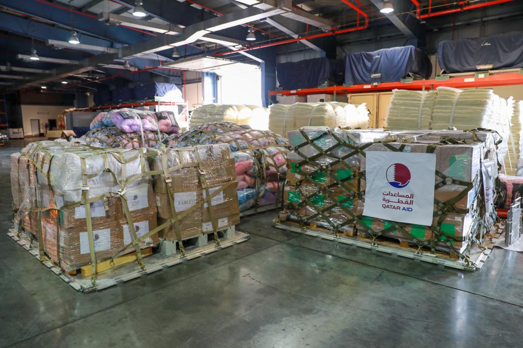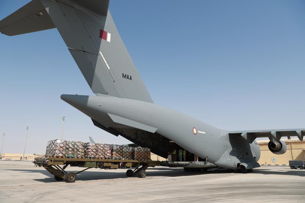 توجهت إلى مدينة العريش في جمهورية مصر العربية الشقيقة، اليوم، خمس طائرات تابعة للقوات المسلحة القطرية، تحمل 156 طنا من المساعدات، تتضمن مواد غذائية وطبية ومستلزمات إيواء، مقدمة من صندوق قطر للتنمية، والهلال الأحمر القطري، وقطر الخيرية، تمهيدا لنقلها إلى غزة، ليبلغ بذلك مجموع الطائرات 26 طائرة بإجمالي 879 طنا من المساعدات.