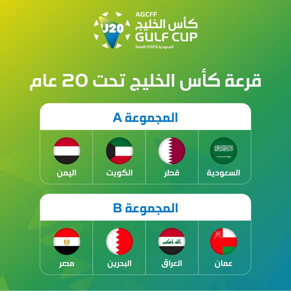 أسفرت قرعة بطولة كأس الخليج للشباب تحت 20 عامًا، التي أُجريت اليوم في الدوحة، عن وقوع المنتخب القطري في المجموعة الأولى إلى جانب منتخبات السعودي والكويت واليمن، وذلك ضمن النسخة الجديدة من البطولة التي يستضيفها الاتحاد السعودي لكرة القدم.