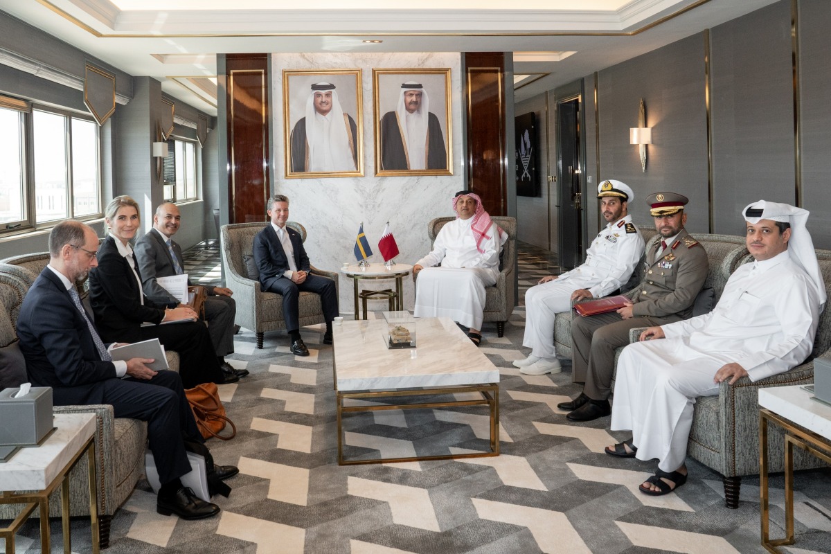 التقى سعادة الدكتور خالد بن محمد العطية نائب رئيس مجلس الوزراء ووزير الدولة لشؤون الدفاع، سعادة السيد بال جونسون وزير دفاع مملكة السويد، والوفد المرافق له، الذي يزور البلاد حاليا.