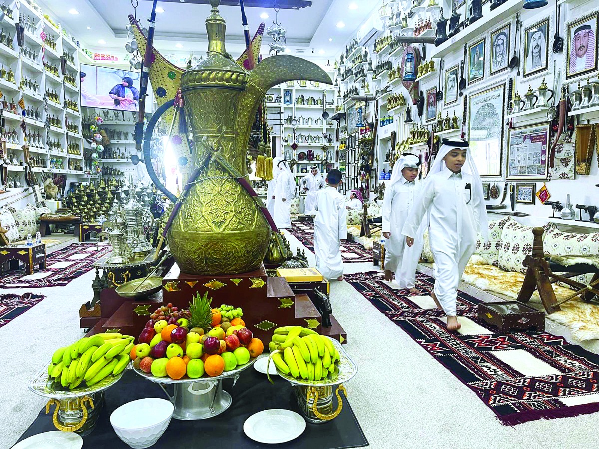 «الشرق» زارت مجلس ومتحف منصور الرويلي، ورصدت أجواء العيد بداخله، حيث تواجد الأصدقاء منذ الصباح وحتى المساء، ولمست الألفة والمحبة بين كل من كان في المجلس وهم يحرصون على تبادل التهاني فيما بينهم بمناسبة عيد الفطر المبارك، كما أن صاحب الملس وأشقائه حرصوا على تواجد أبنائهم معهم في المجلس لاكتساب العادات والتقاليد القطرية.